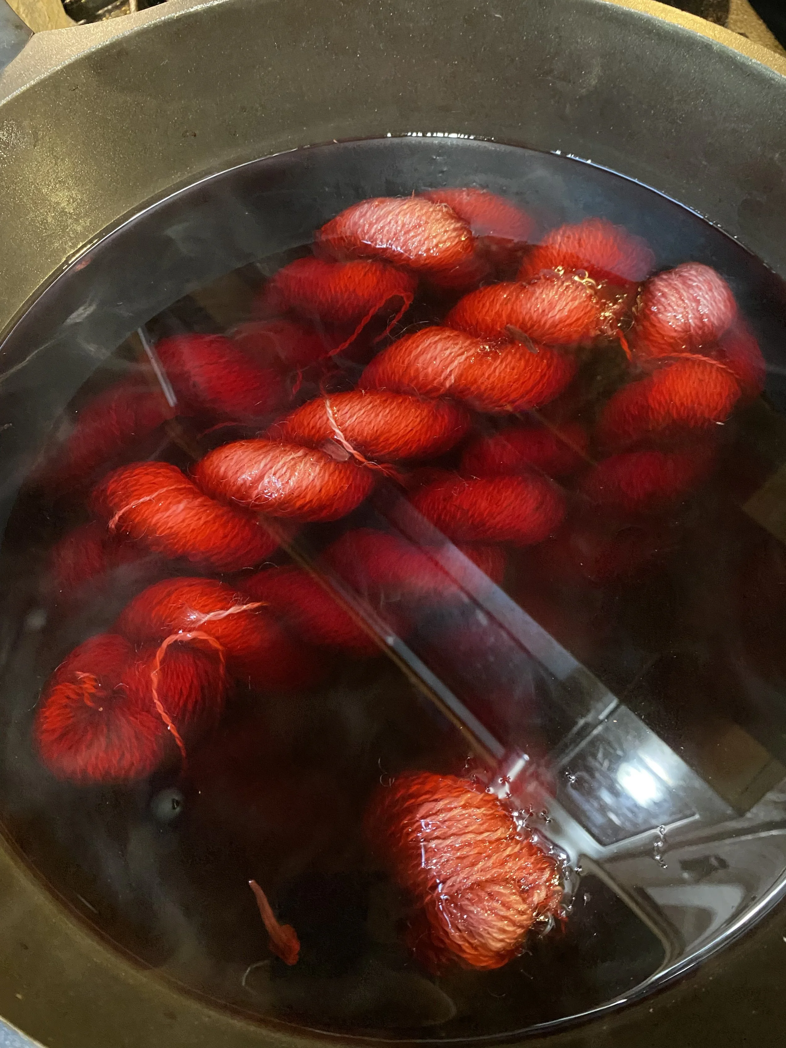 Our fiber process starts with brushing our adorable but messy animals to remove any hay, dirt, or debris, ensuring our yarn remains soft and enjoyable to work with. After shearing, we carefully sort through the fiber, send it off for processing, and then use natural dyes to create beautiful, chemical-free colors, making each batch of yarn unique and ready for your next project.